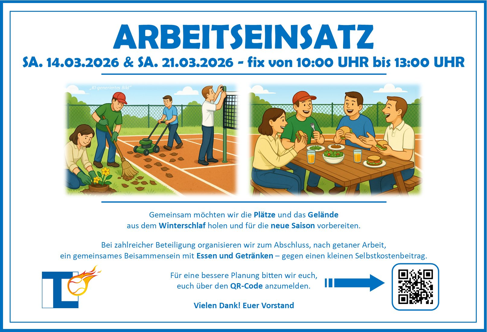 Unter Verschiedenes durfte Thomas Arndt zwei erfreuliche Mitteilungen machen. Die Firma Heizung & Sanitär Appel in Person des anwesenden Mitglieds Stefan Appel spendete für die Außenplätze einen kompletten Satz neuer Sonnenschirme. Vielen Dank dafür!
