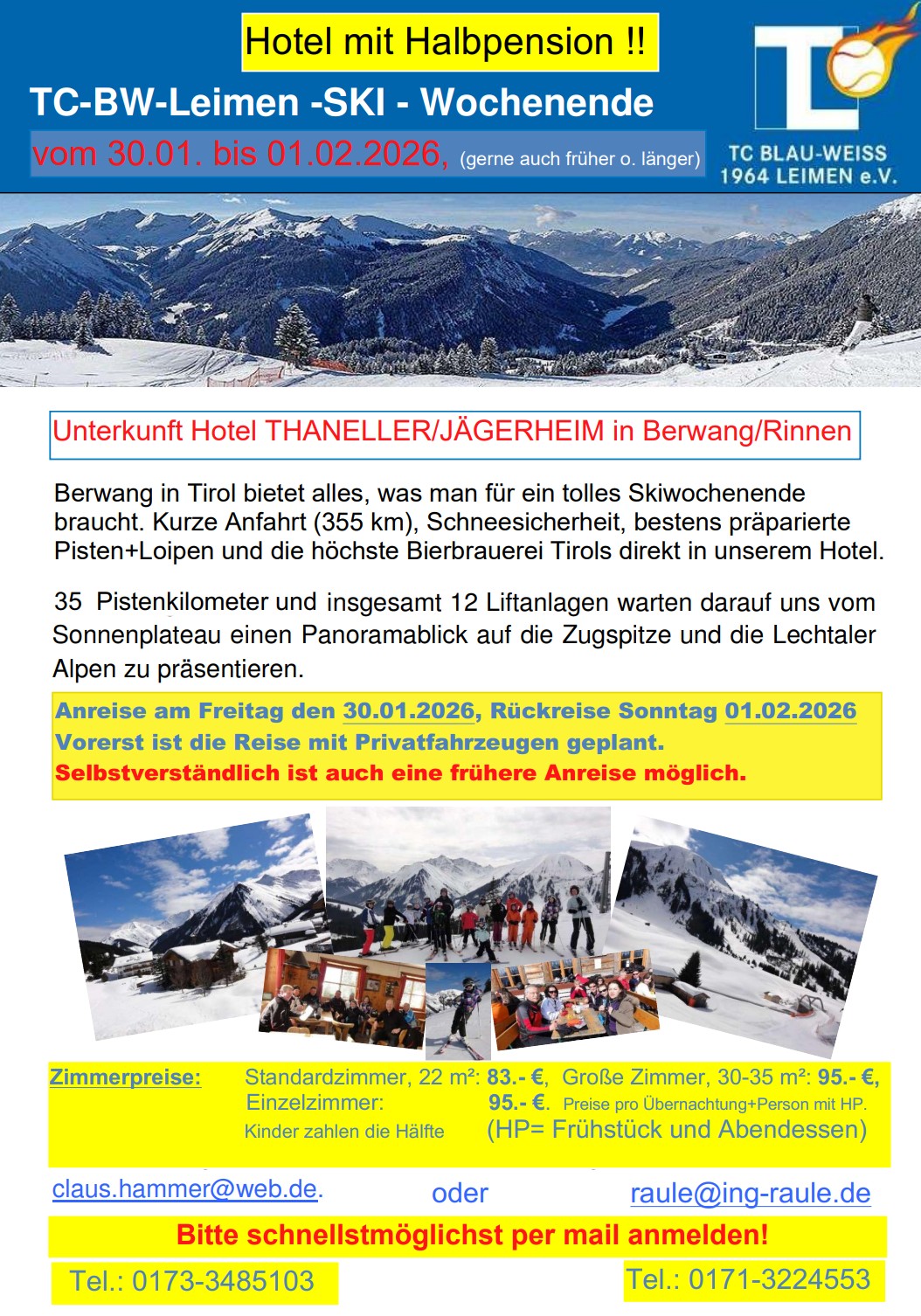 | 30. Januar - 1. Februar | Skiwochenende in Berwang |
